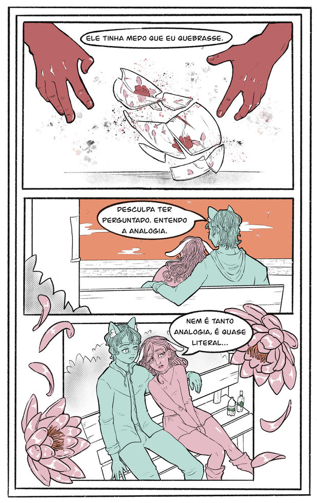 Primeiro capítulo do quadrinho Platônico, já disponível para os assinantes do site. Se trata de um slide of Life, romântico que acontece em um lugar peculiar. Lá, a protagonista reflete sobre suas atitudes nada comuns em relacionamentos. Ou, mais comuns que imagina.